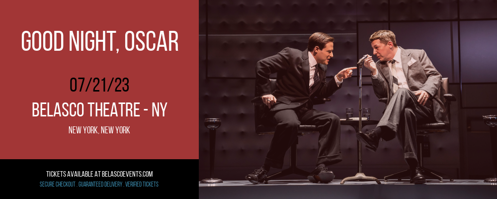 The word is out, tickets are available for Good Night, Oscar and it's all anybody in the biz seems to be talking about! The New York Times have some kind words about this wonderful show, the response from the media has been unprecedented. The star-studded cast is nothing short of magnificent, the lighting, the effects, the production, just impressive! The tour for summer, 2023, it's already looking like another smash hit! Fans are happy to see that the evening is going to be at the superb, the impressive, Belasco Theatre, New York, New York. amongst fans it's favored, visitors prefer it due to the surroundings, the facilities are brilliant and the food and drink vendors are spectacular! Start your night right with a top-notch venue, the remainder will be relaxing! Audiences will love it, and it's looking like one hell of an evening! To gain access to the night, click the link by scrolling up.